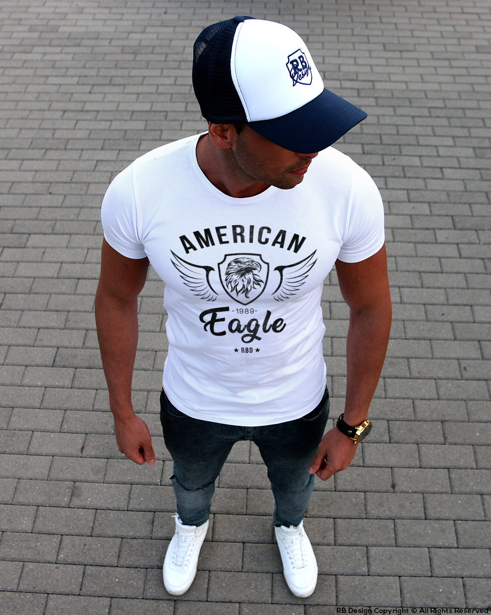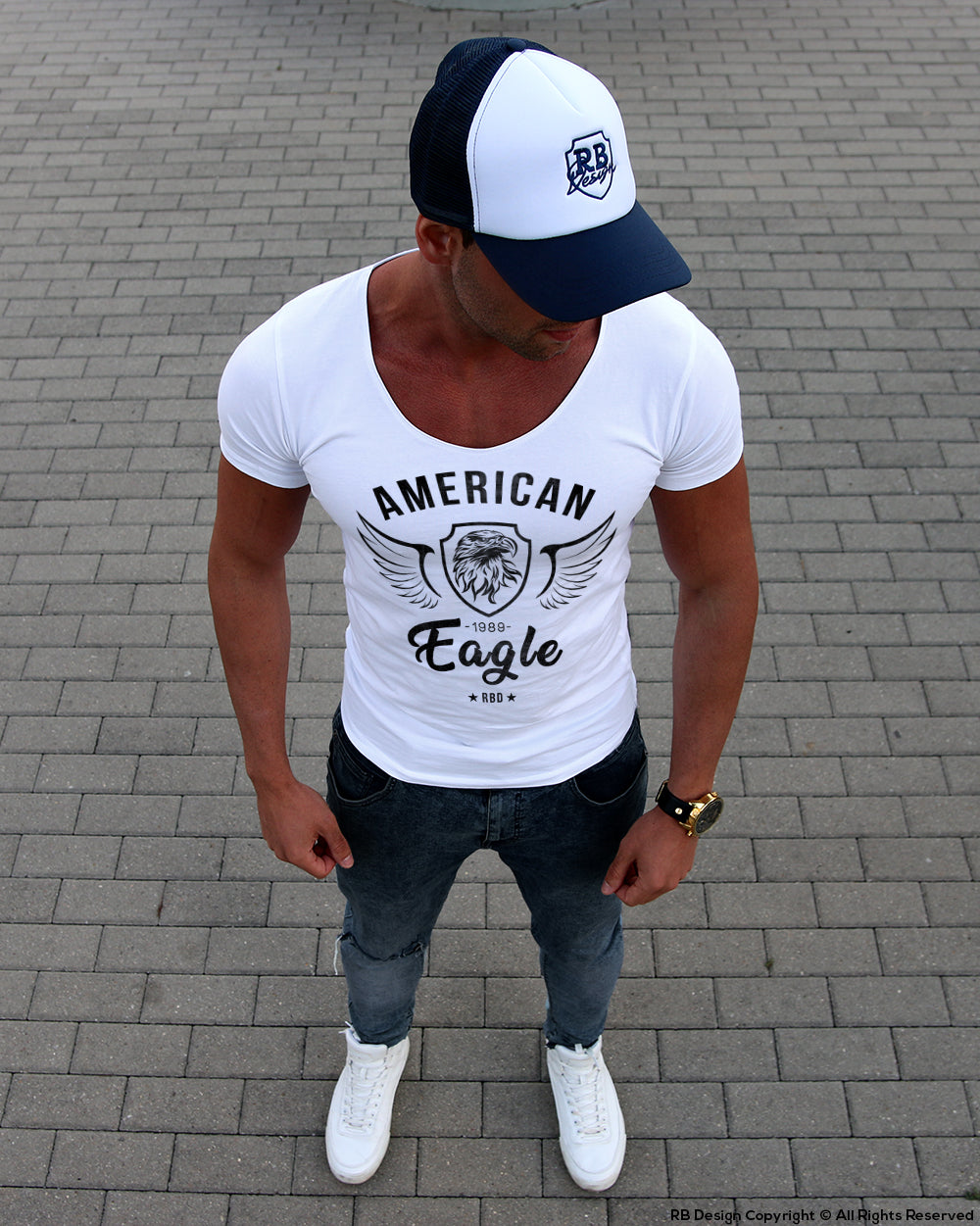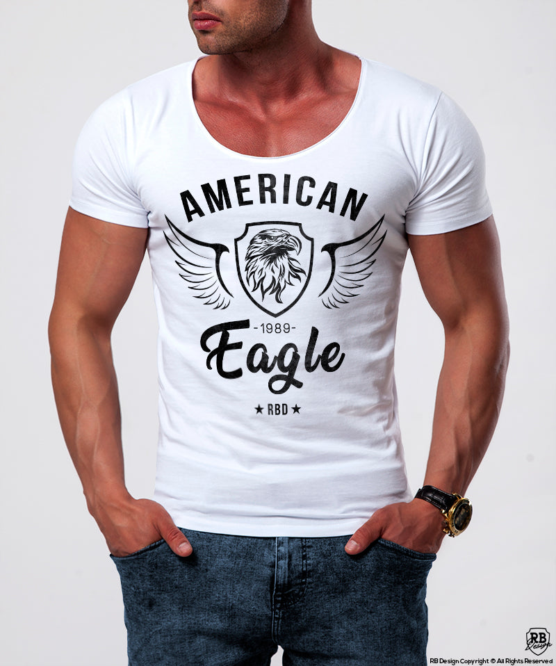 American Eagle Mens White T-shirt RBD Street Style Tees MD872